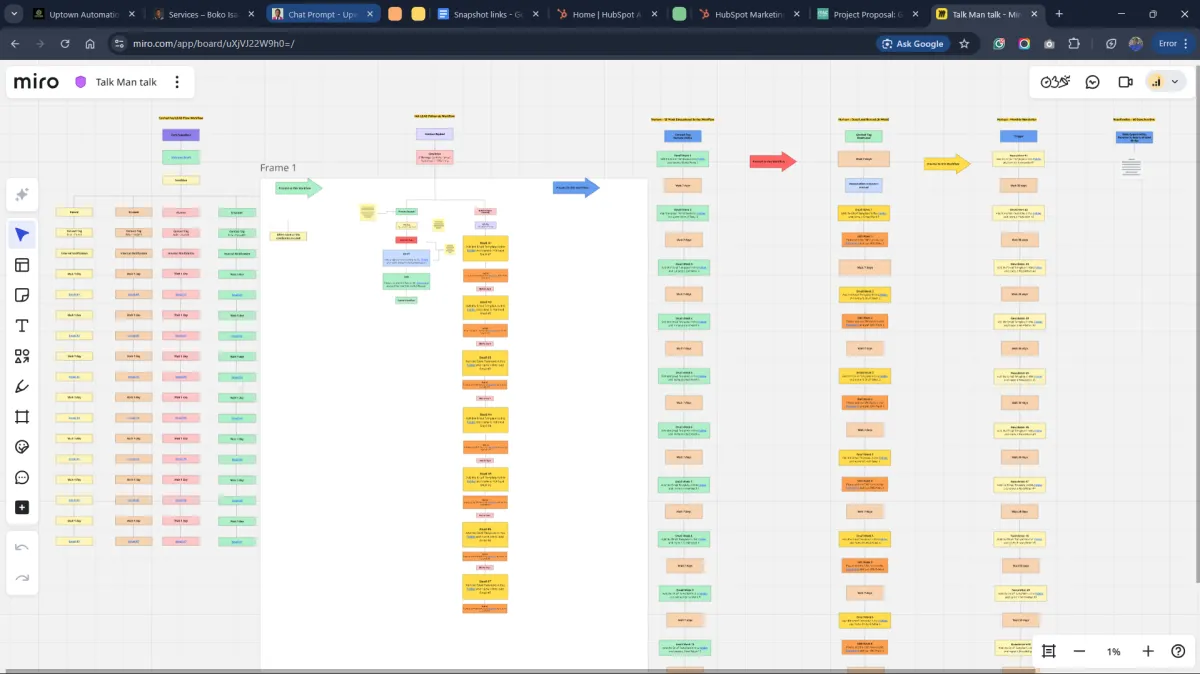Workflow logic are mapped in Miro before a single workflow is built.