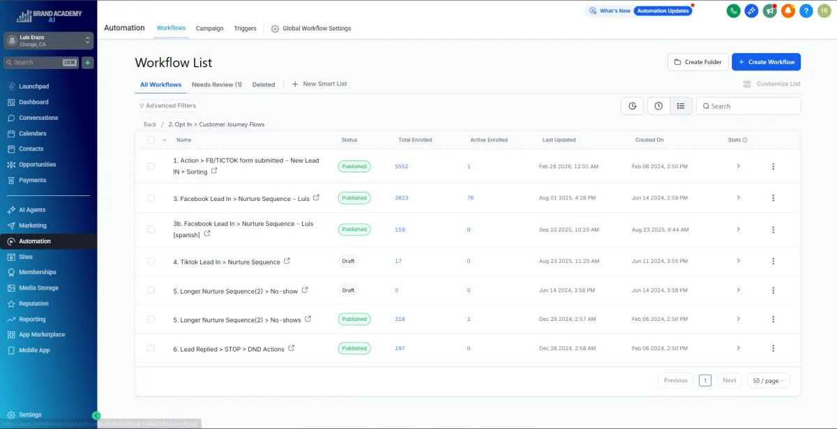 GoHighLevel was chosen as the central platform for CRM, automation, funnels, and communication.