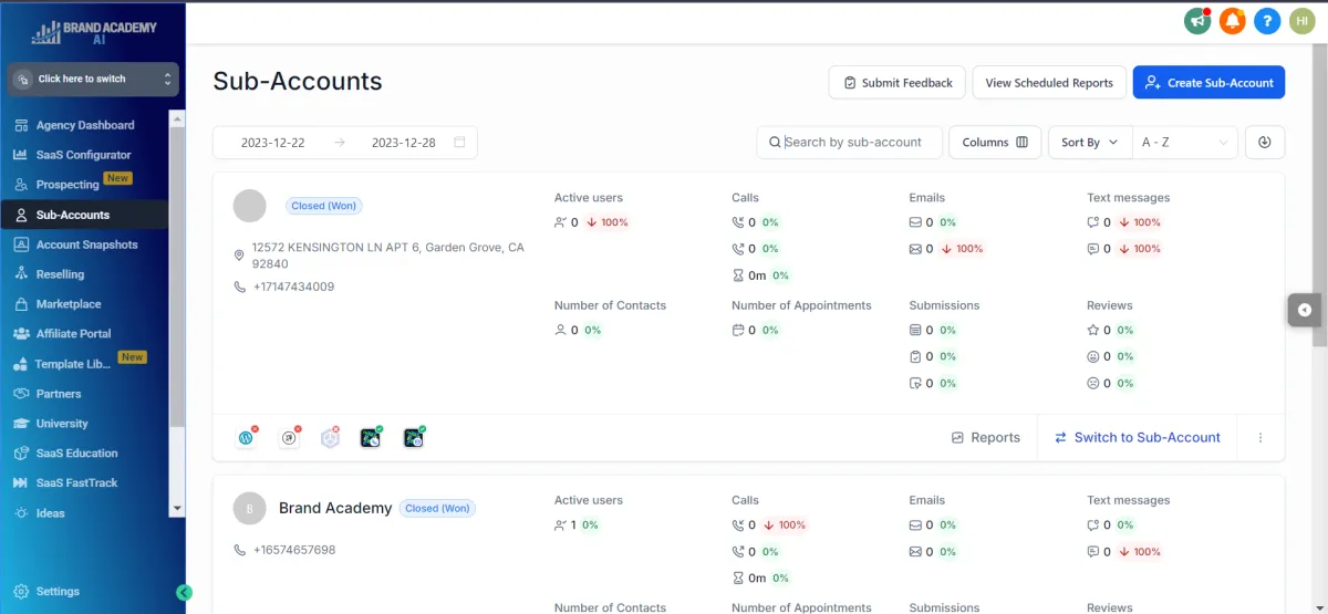 Setup of GoHighLevel sub-account infrastructure