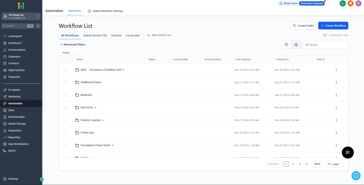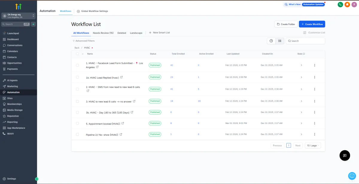 A large California-based home service operations manager overseeing multiple service categories — including ADU, electricity, roofing, landscaping, plumbing, solar, HVAC, and more — required a scalable marketing and sales infrastructure inside GoHighLevel.