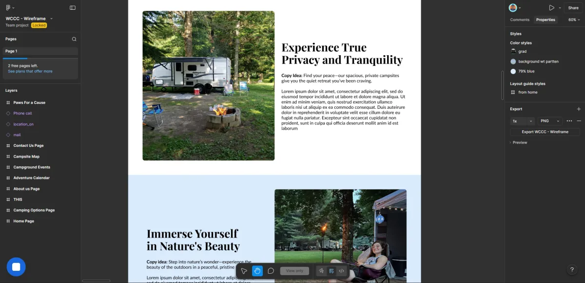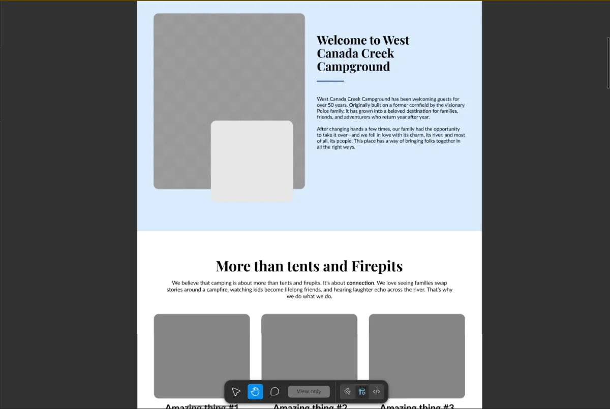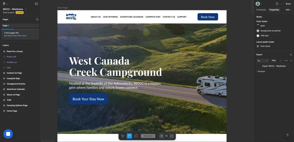 The website was designed to feel simple, open, and welcoming, mirroring the campground experience.