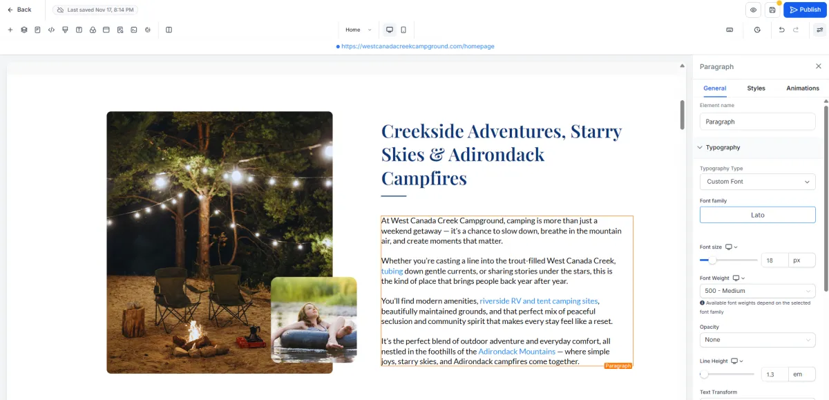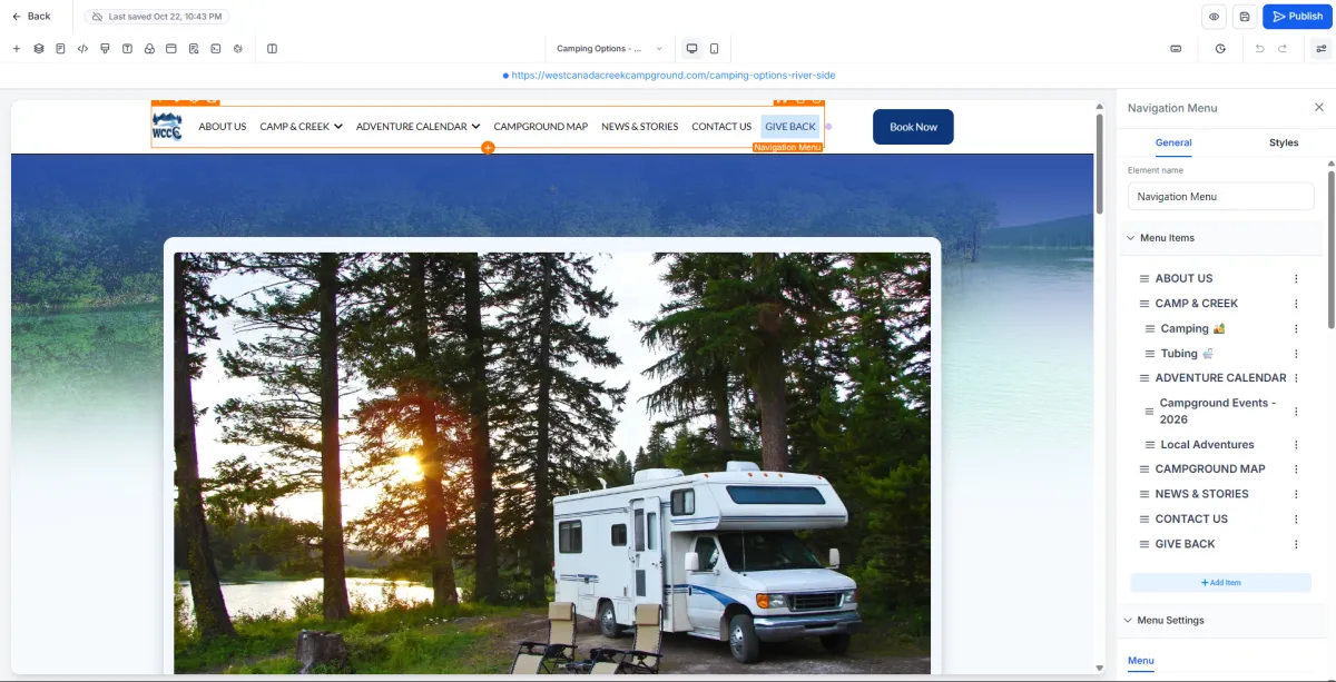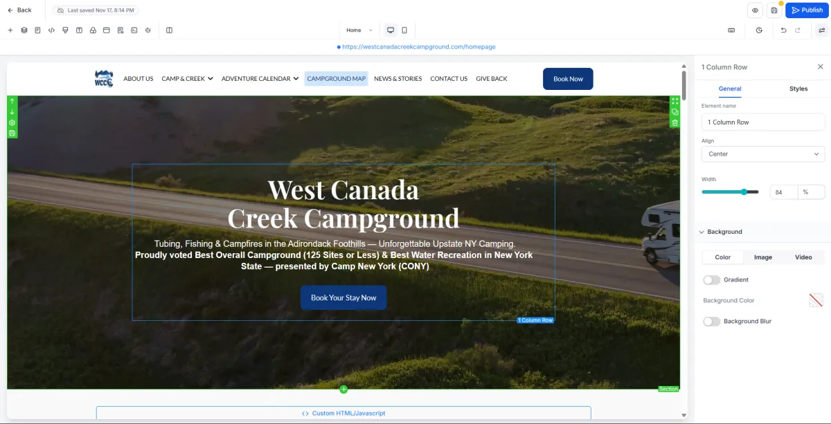 While the campground already had a functioning website and was receiving bookings, the site did not fully capture the beauty and experience of staying at the campground.