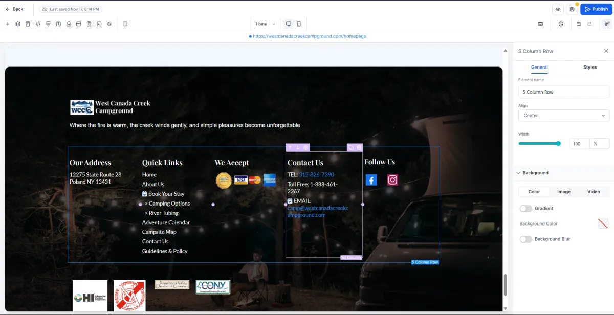The redesign creates a stronger digital presence that better represents the campground and supports future growth.